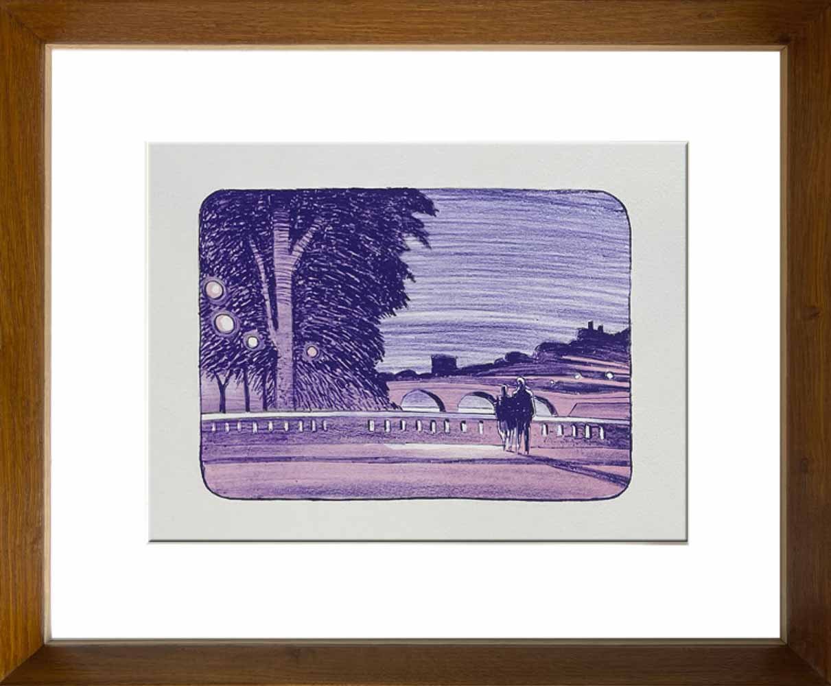 Vores håndlavede ramme, er noget af det fineste håndværk, man kan finde. Materialerne er nøje udvalgt og sammensat, så det fremhæver litografiet på bedste vis. Rammen er af massivt egetræ med indlæg af ibenholt. Glaslisten er i massivt egetræ.