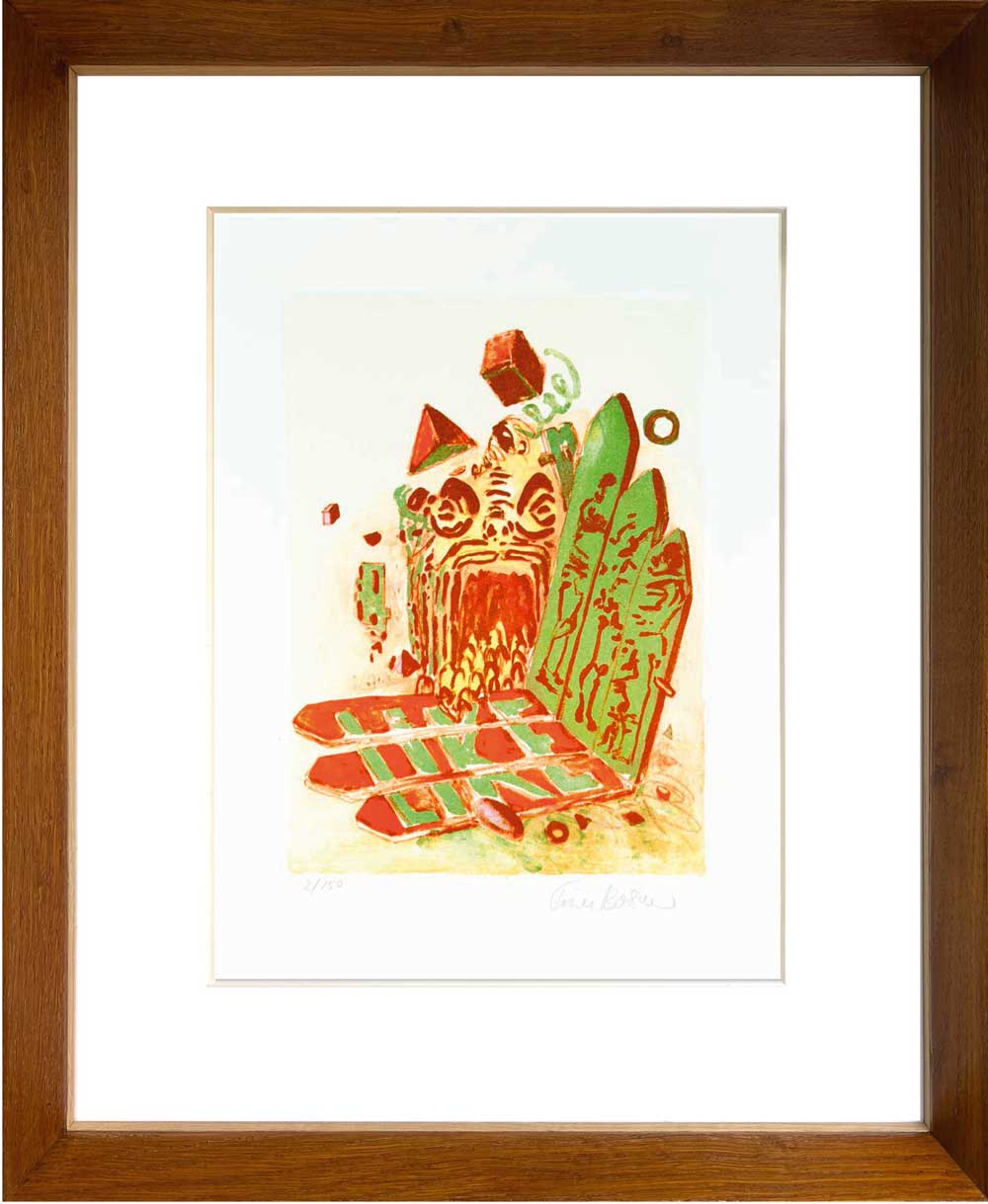 Originalt farvelitografi. Signeret og nummereret af kunstneren. Trykt på 250g BFK Rives syrefrit bomuldspapir.